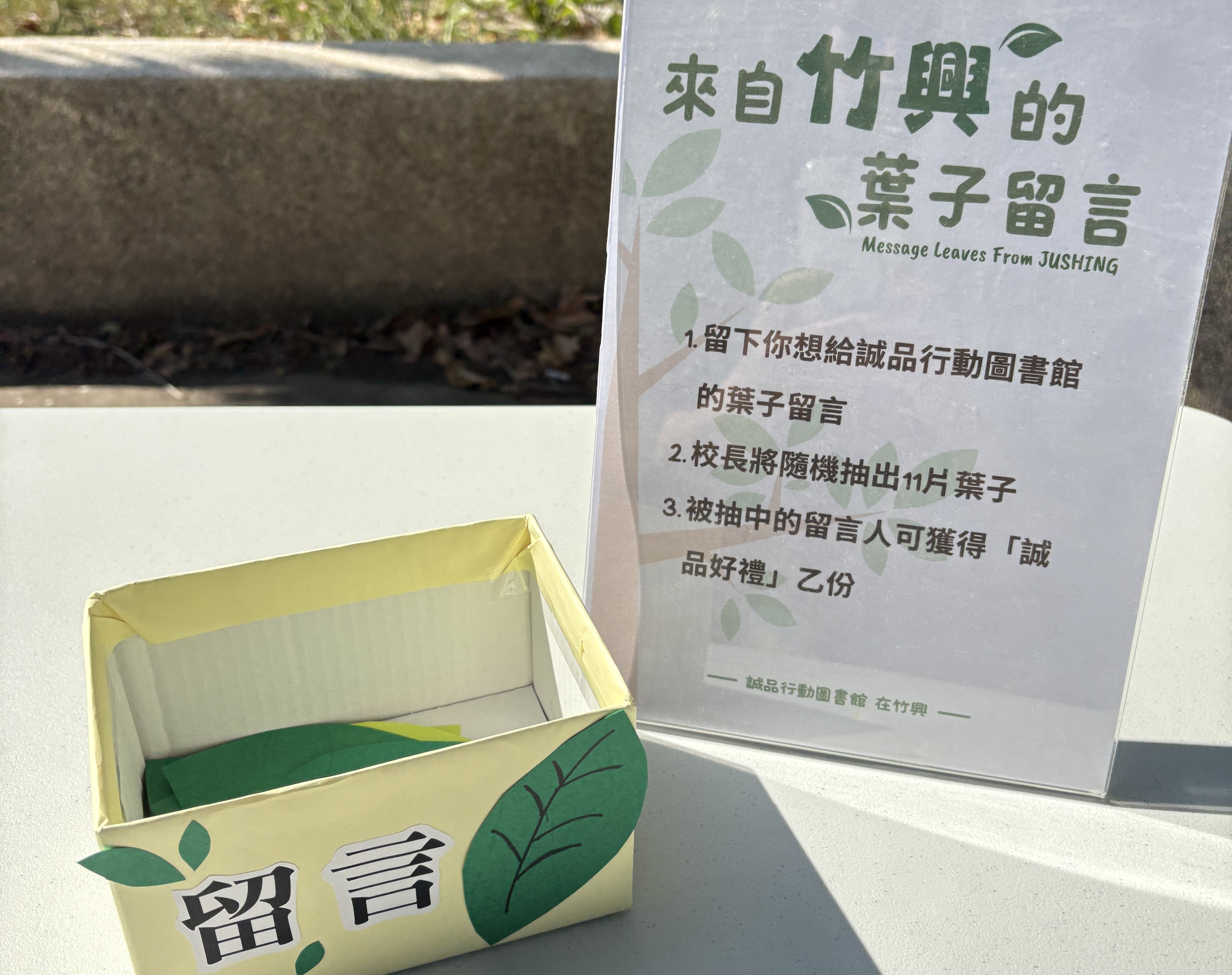 學校特別設計了「想對行動圖書館說的話」留言葉活動。