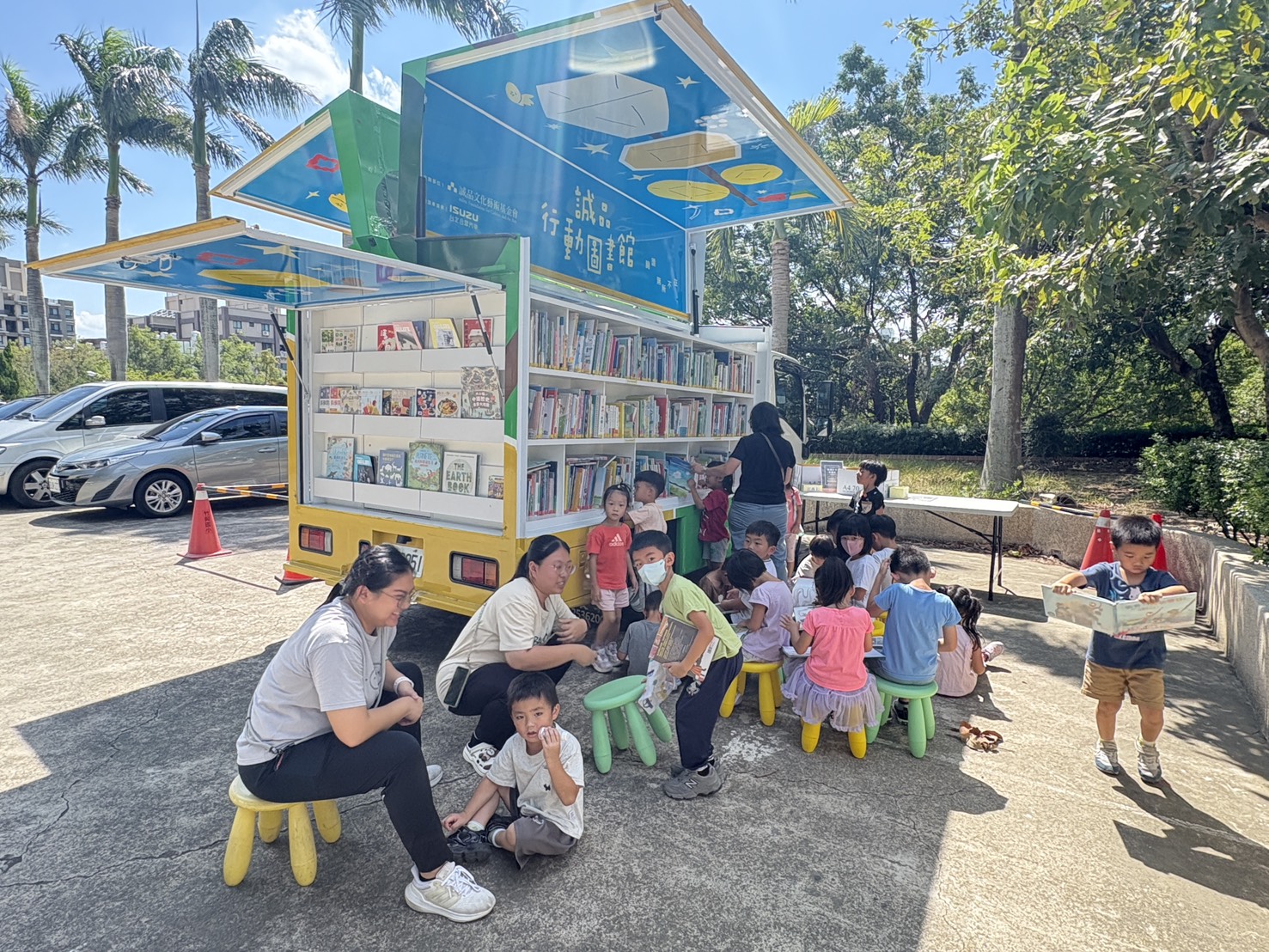 那天陽光正好,一輛亮黃色的誠品行動圖書館緩緩駛進校園,像是一艘滿載故事的移動小船。