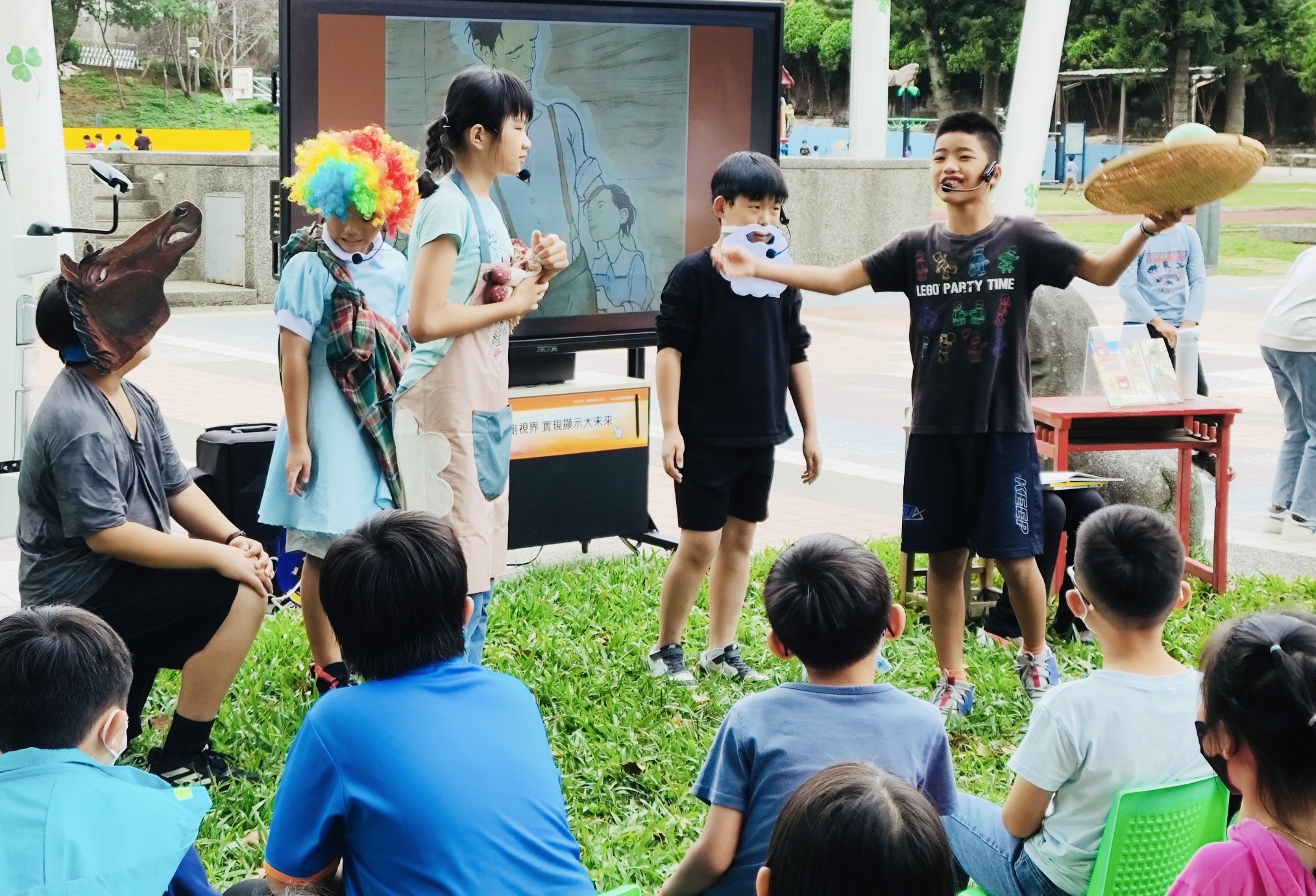 大孩子們使出渾身解數,用誇張的表情、變化的聲音,努力吸引小小聽眾的注意。