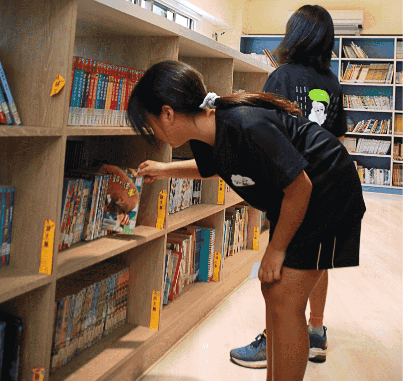 還記得第二節下課,羊光森林(圖書館)內擠滿了許多來借閱圖書的孩子,他們在書架前翻開捐贈的書籍,目光被故事吸住,連下課鐘響都沒聽見。從那之後,孩子們便常常與同學們,興奮地分享劇情、討論內容。原來,一本書,真的能改變孩子的視野。