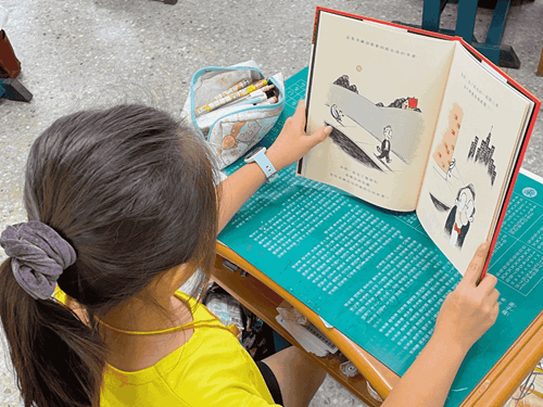 三年甲班羅生是一位有情緒行為障礙的孩子,同時也有學業成就低落的情形,學習非常被動,閱讀速度緩慢,但是如果有老師在一旁陪讀,他就比較能夠靜下心來閱讀,也能夠和老師分享閱讀後的心得。他喜歡看圖畫豐富的繪本,搭配少許文字對他來說較易進入書本的世界。