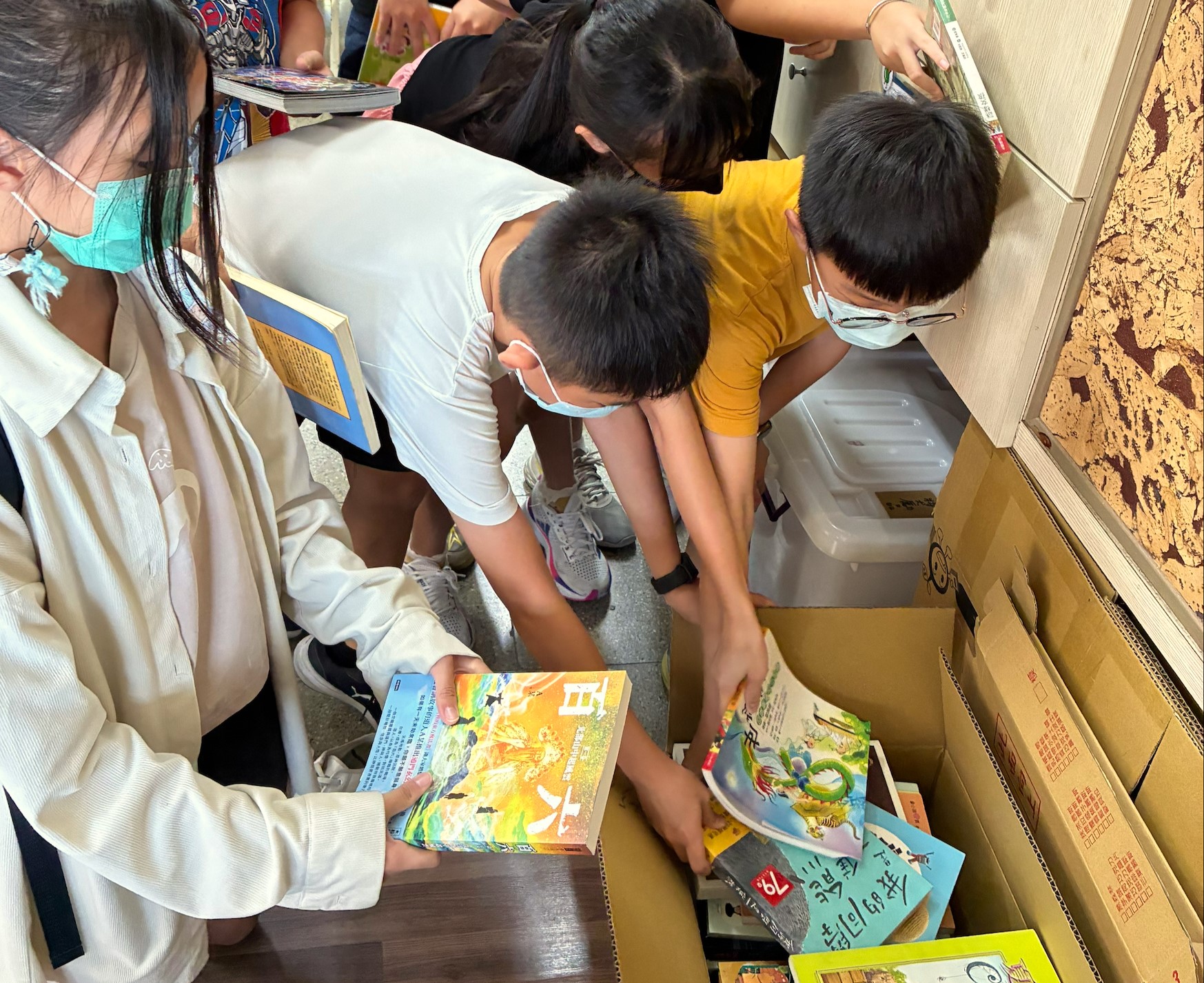 收到圖書之後,我們整理並歸類,一同將書籍放置在公共的書櫃,提供需要的人共讀。同時也在教室設立小書角,鼓勵同學自由借閱。老師與學生可以在下課、早自修、閒暇的時光翻閱書籍,讓孩子感受到閱讀的樂趣。當閱讀成為習慣,書香就會在校園中自然流動。