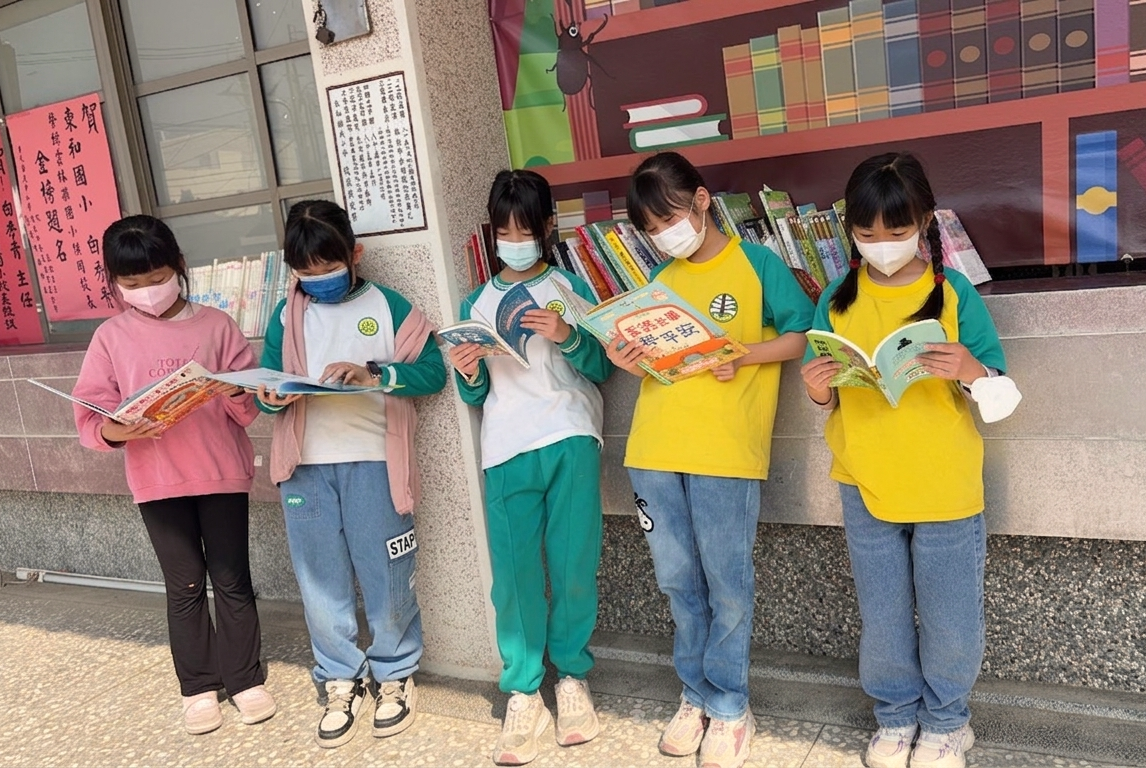 我們把書搬出圖書館,放在孩子必經的轉角。這裡沒有嚴格的借閱登記,也沒有弄壞書籍的責備,只有對知識的渴望與尊重。早晨的五分鐘、課間的幾頁翻閱、放學等待家長接回的時間,讓書本成為最長情的陪伴。