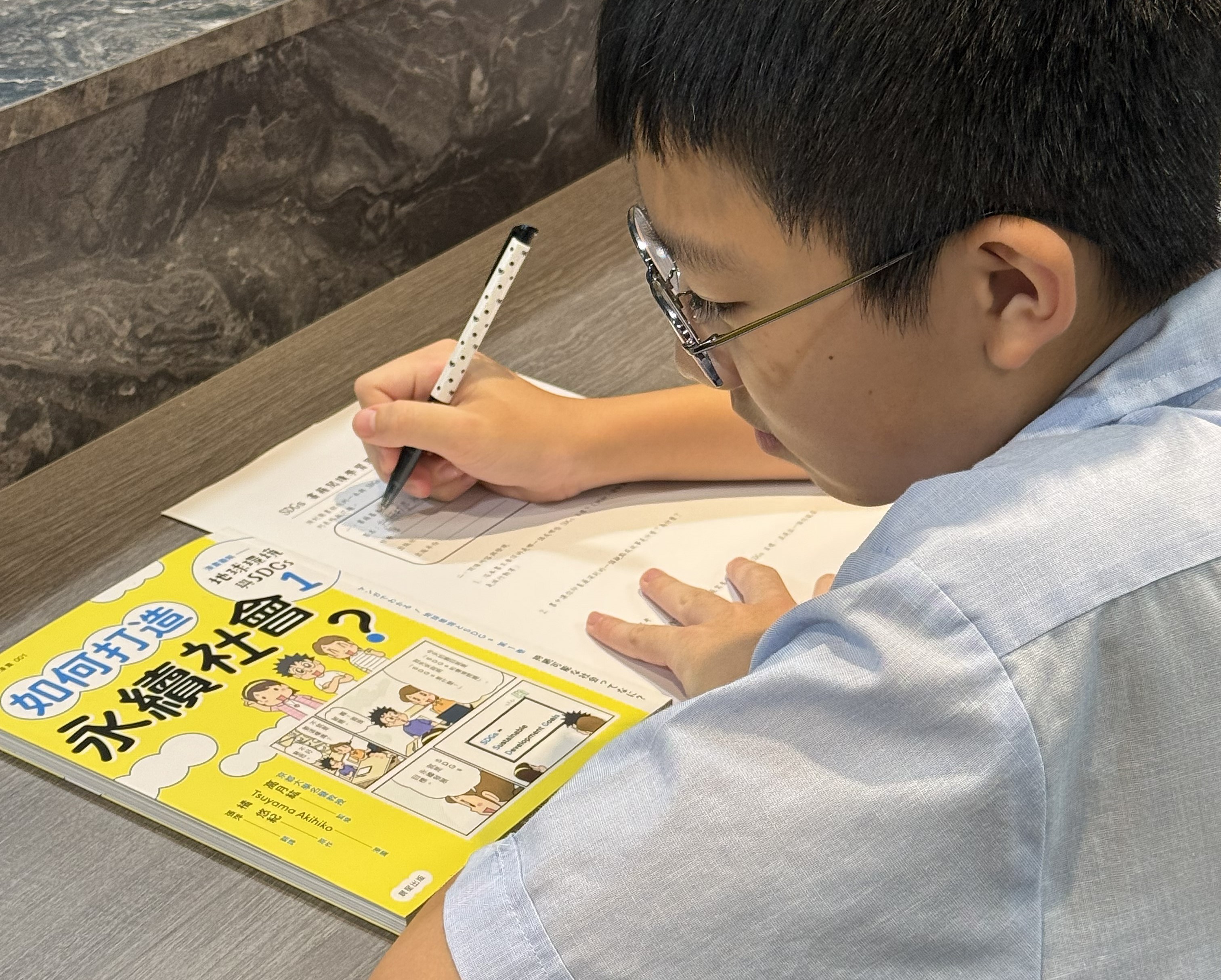 這批書讓課堂變得更立體、更有行動力。自然課從書本延伸到戶外觀察;英語課練習用簡單英文介紹永續議題;圖書館設立「一本書一個行動」展示架,學生根據書中主題領取行動任務卡。