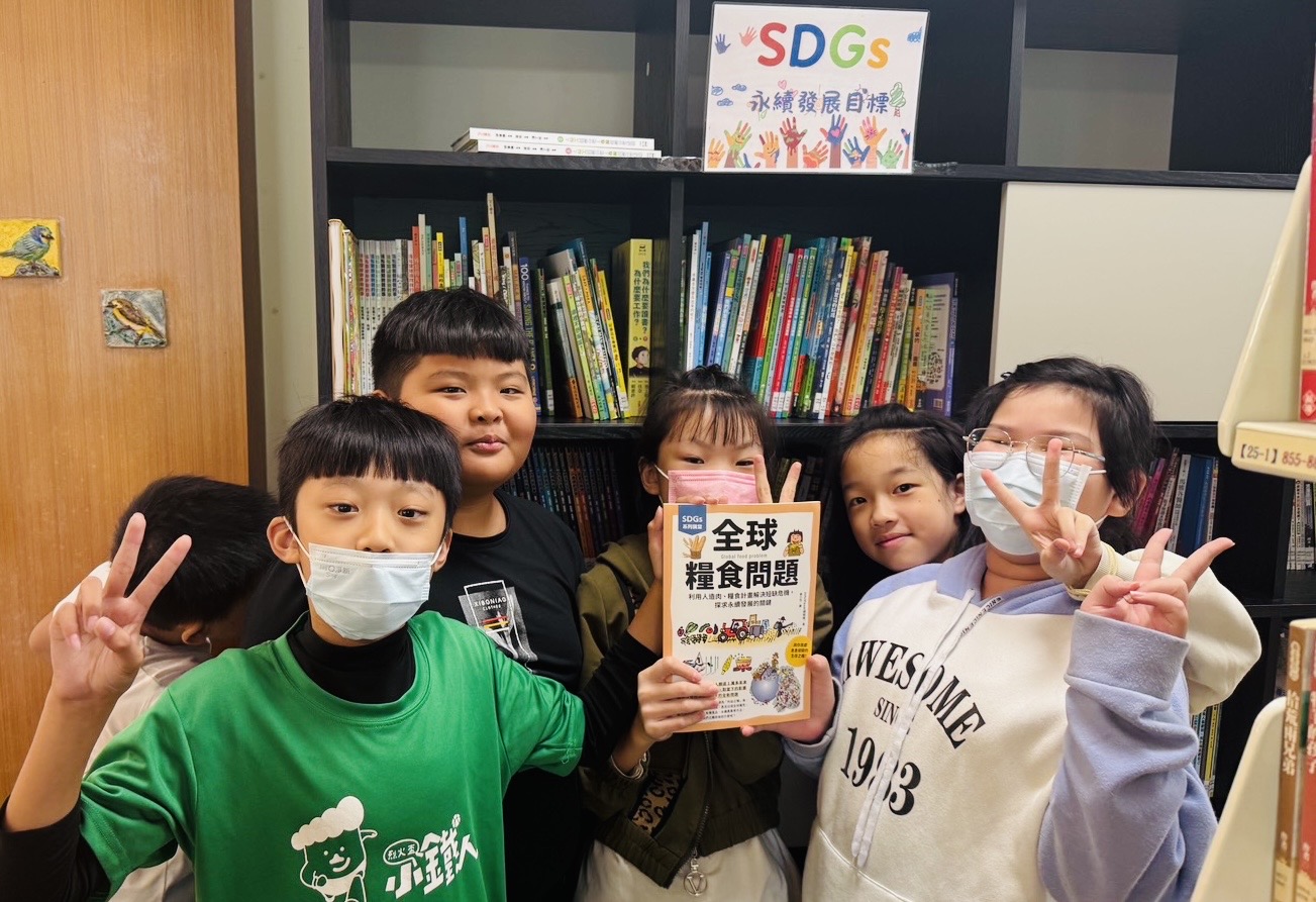 本校的閱讀推動策略,不僅著眼於課內閱讀,更讓孩子在日常生活中持續實踐。學校在圖書室設立「SDGs 專區」,每本書皆附有對應的目標標籤與延伸行動建議;學生借閱後可在「閱讀行動牆」上貼上自己的心得與行動計畫,形成閱讀互動的社群氛圍。